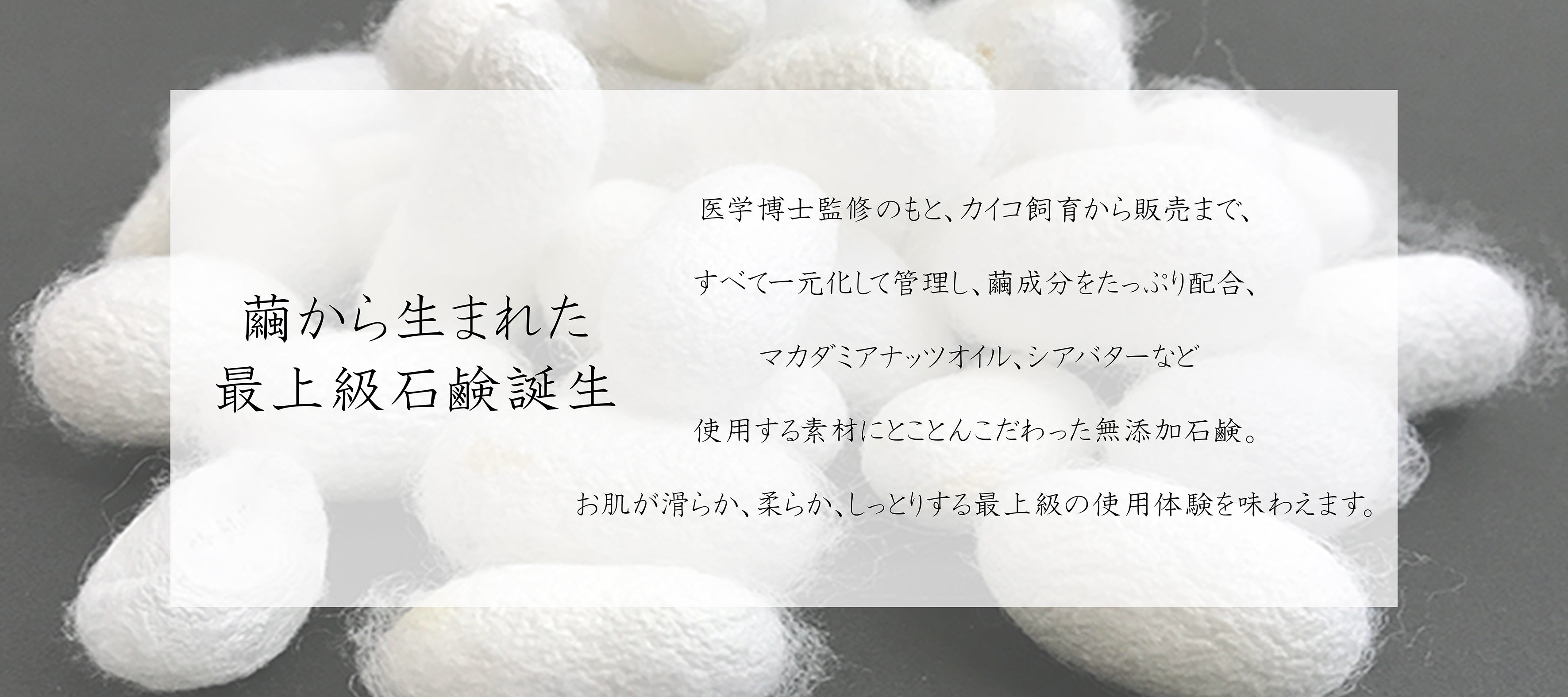 繭成分をたっぷり配合し、さらにマカダミアナッツオイルやシアバターなど、お肌にやさしい素材を厳選。